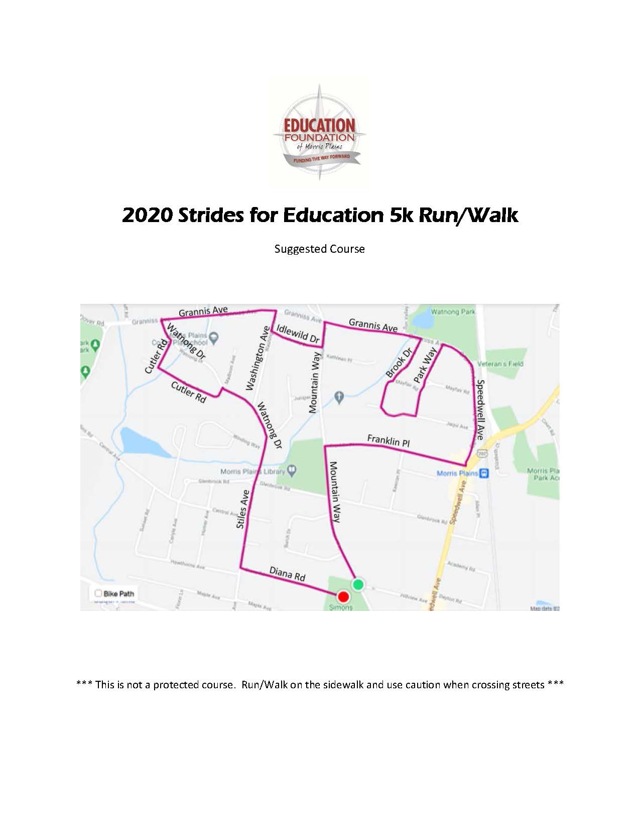 Here's a nice flat course through the streets of Morris Plains--suggestion only! Note: these streets will be open to traffic, so stay alert and stay safe!